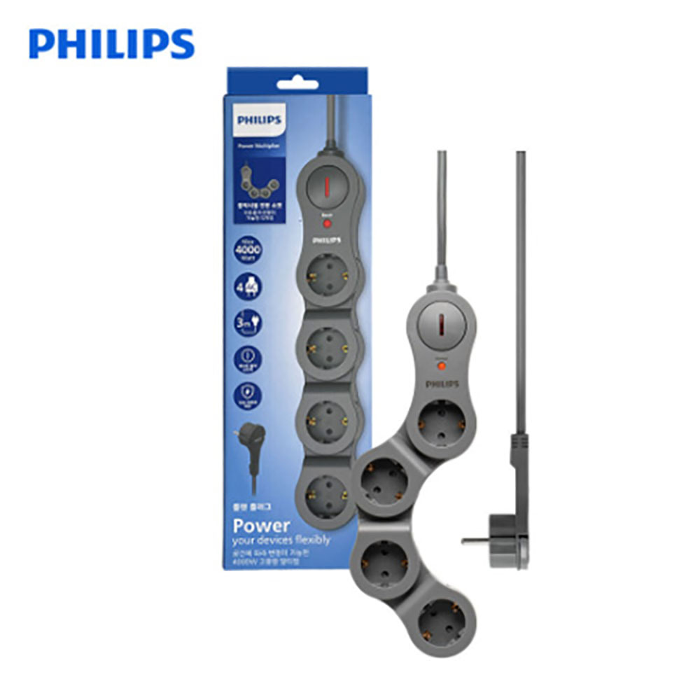 [필립스] 서지보호 플렉시블 고용량 납작 콘센트 멀티탭 4구 3M CHP5240GB