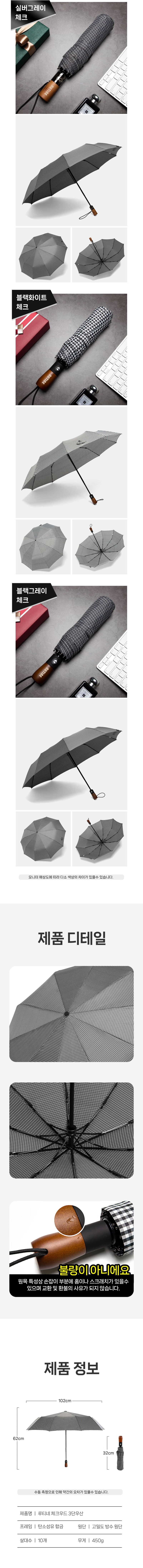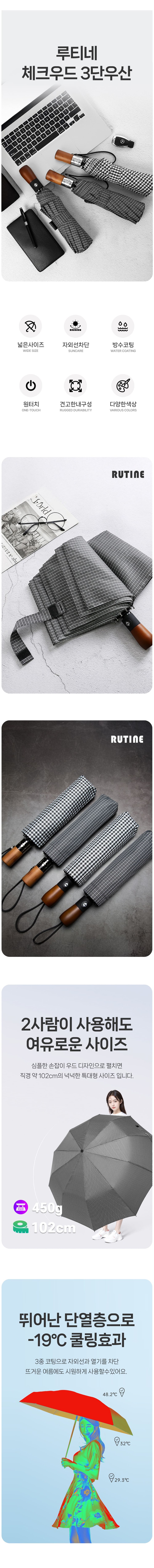[루티네] 체크우드 3단 자동 우산