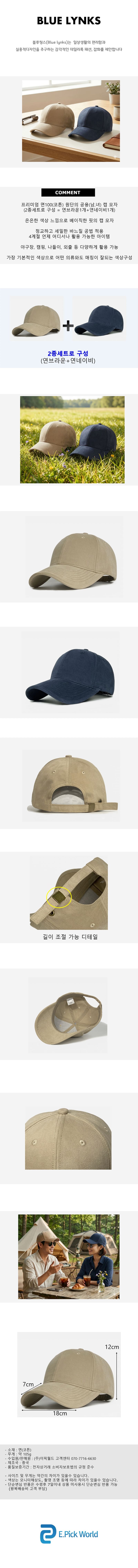 [블루링스] 공용 데일리 사계절 소프트 캡 모자 2종세트 ABC-00505
