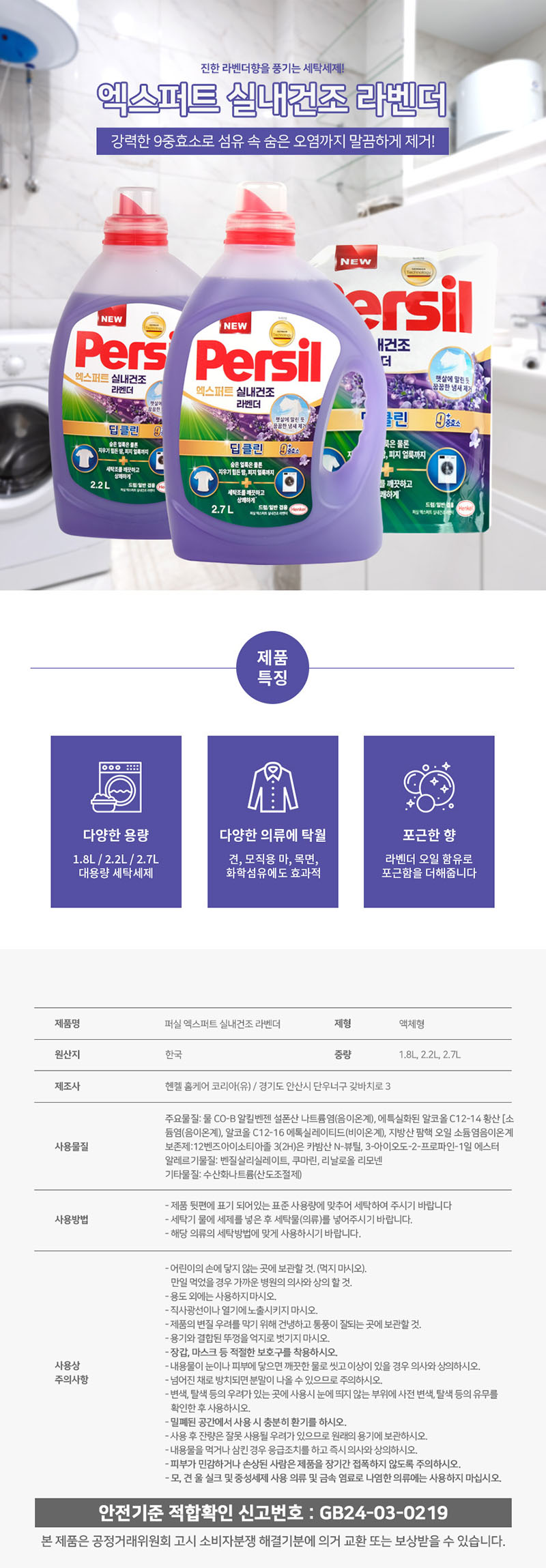[헨켈] 퍼실 엑스퍼트 실내건조 라벤더 2.2L 겸용 X 4개