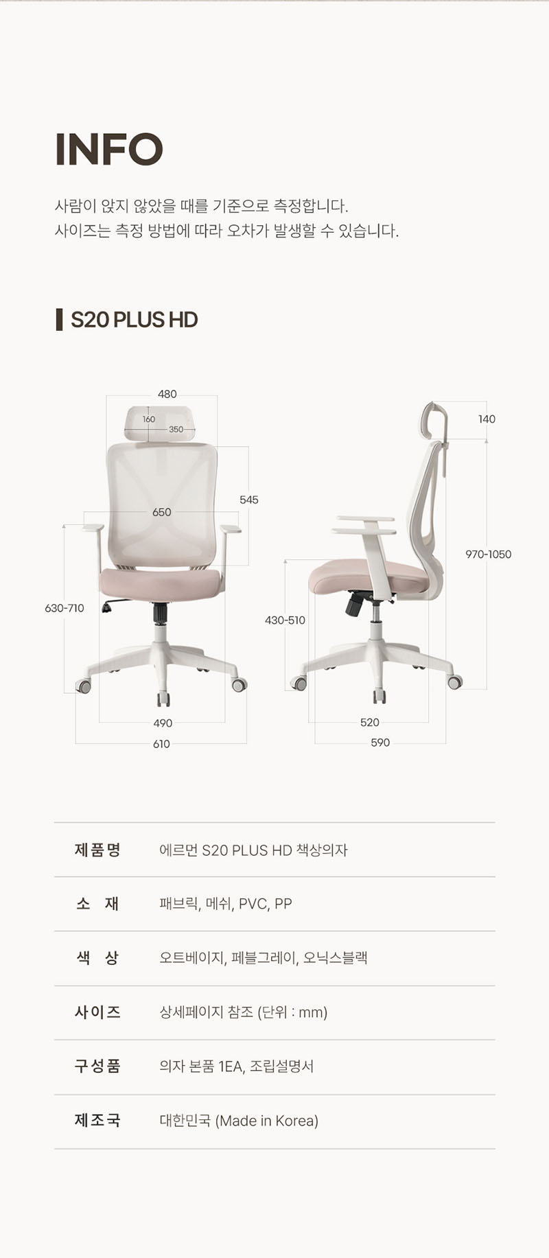 [에르먼] S20 PLUS HD 국내생산 책상의자 사무용 사무실 학생 허리편한 메쉬 컴퓨터의자