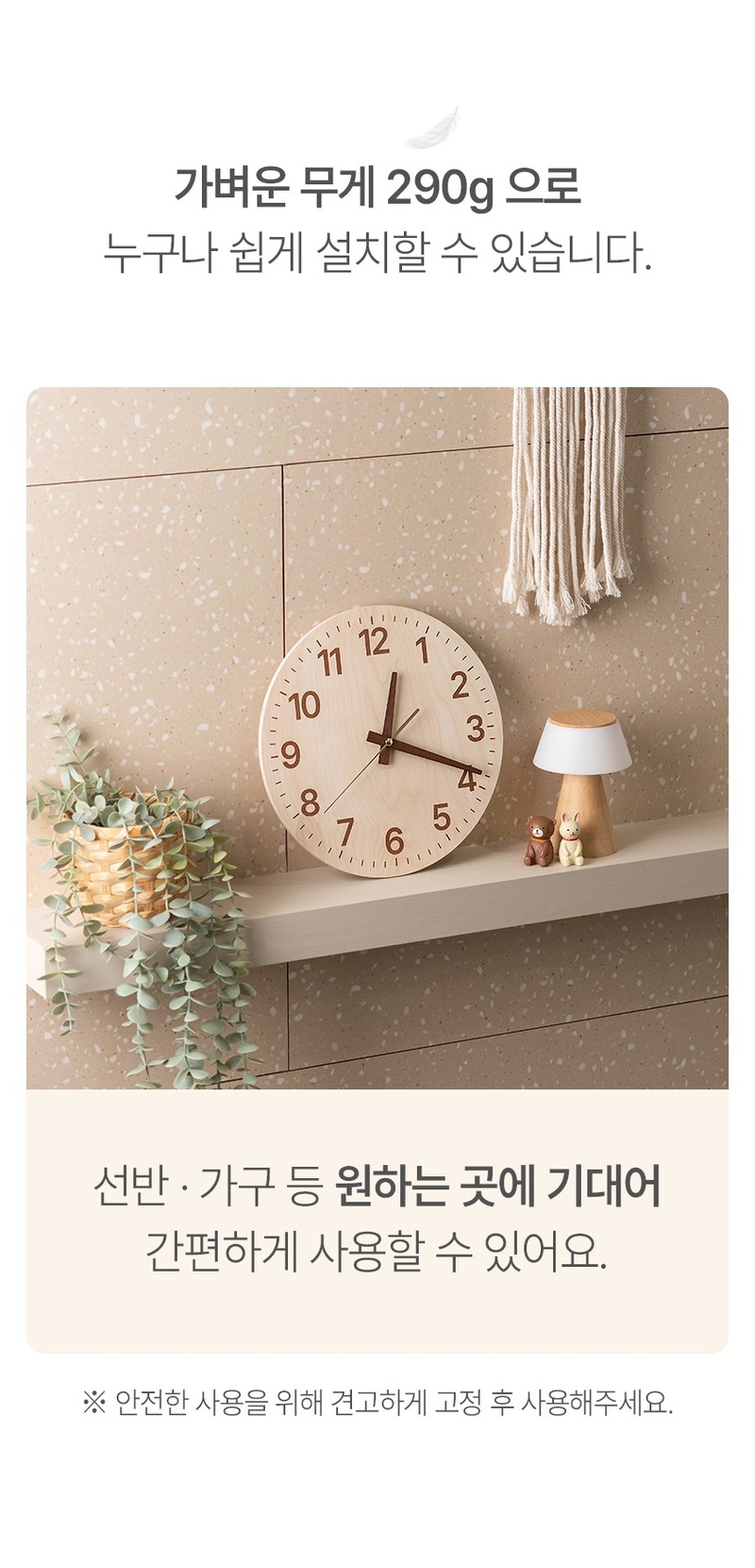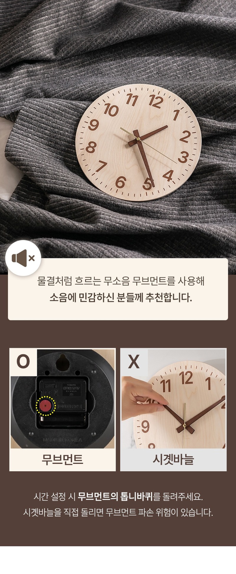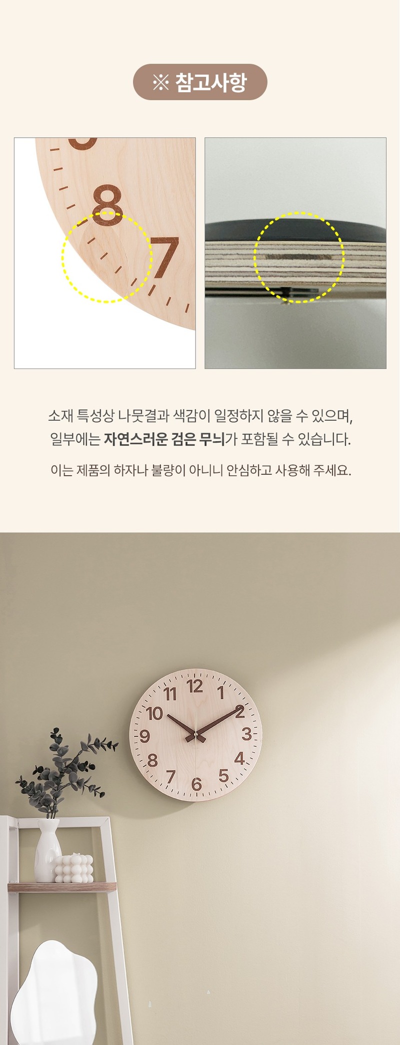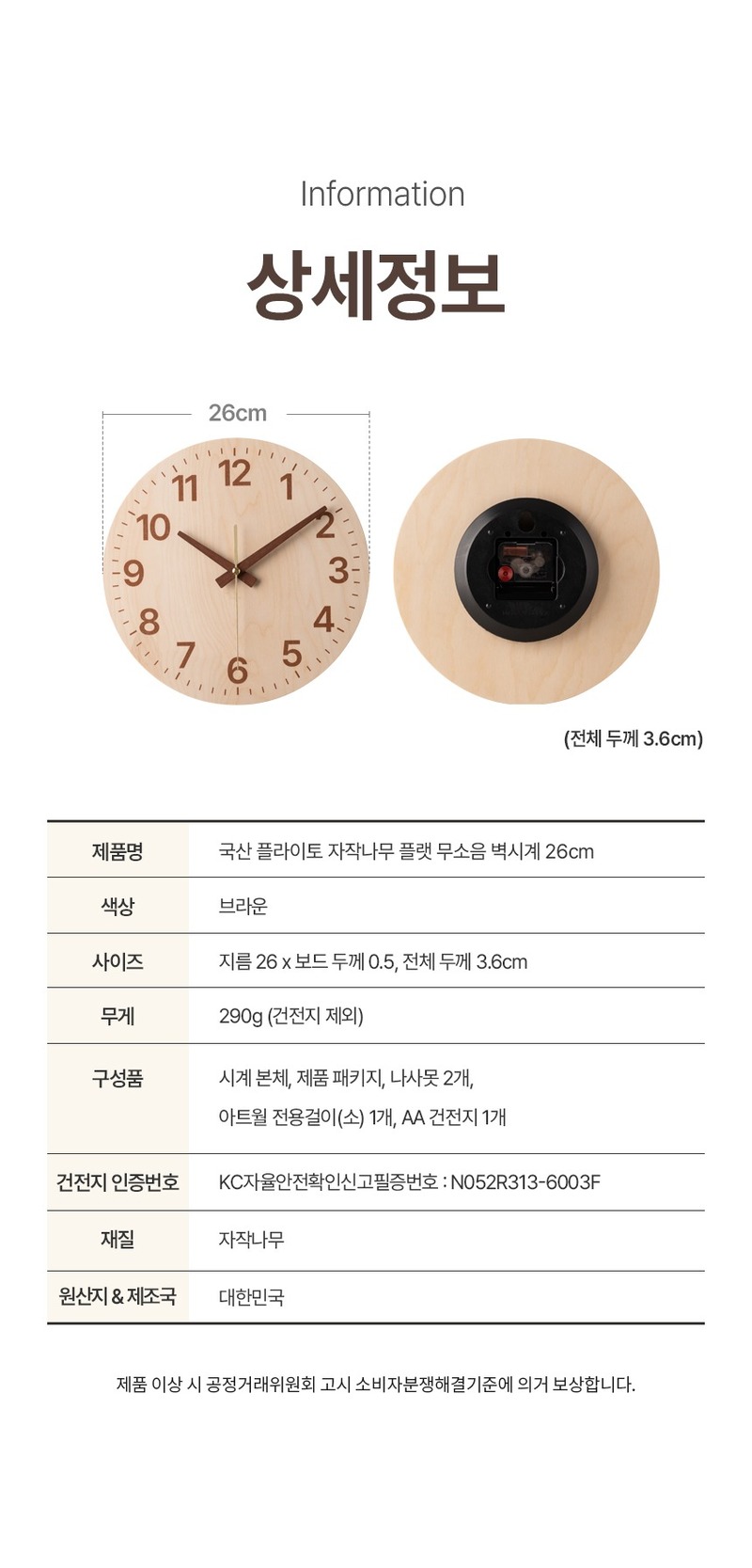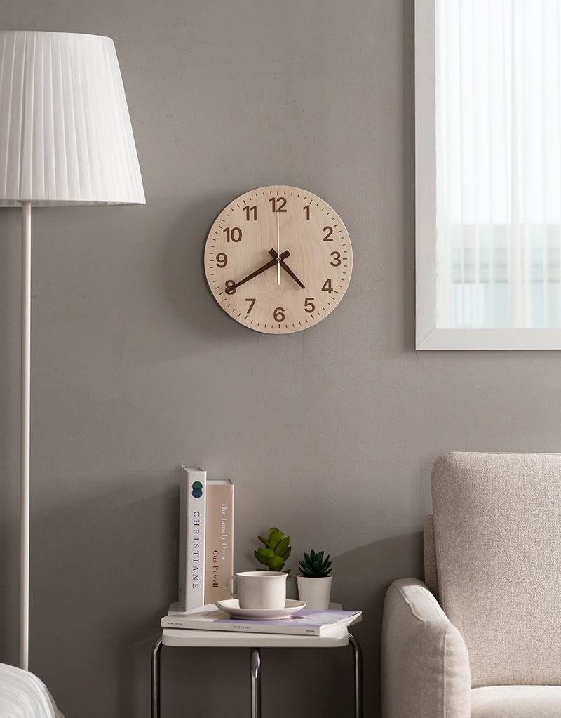 [플라이토] 국산 자작나무 플랫 무소음 벽시계 26cm