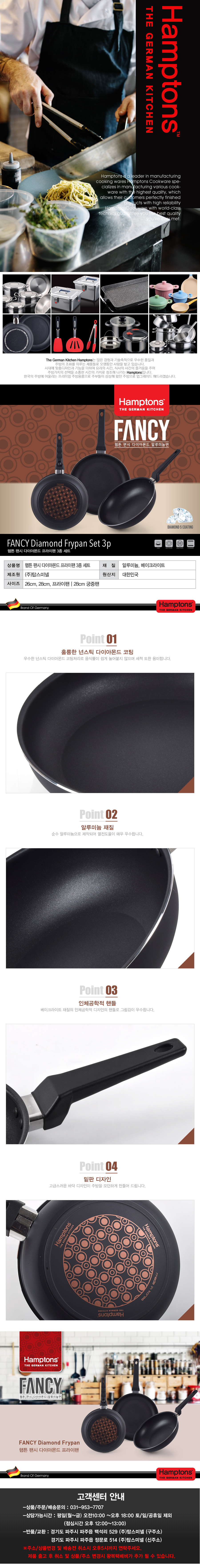 [Hamptons] 햄튼 팬시 다이아몬드 5중코팅 후라이팬3종세트-F / HFF-6F8F8W