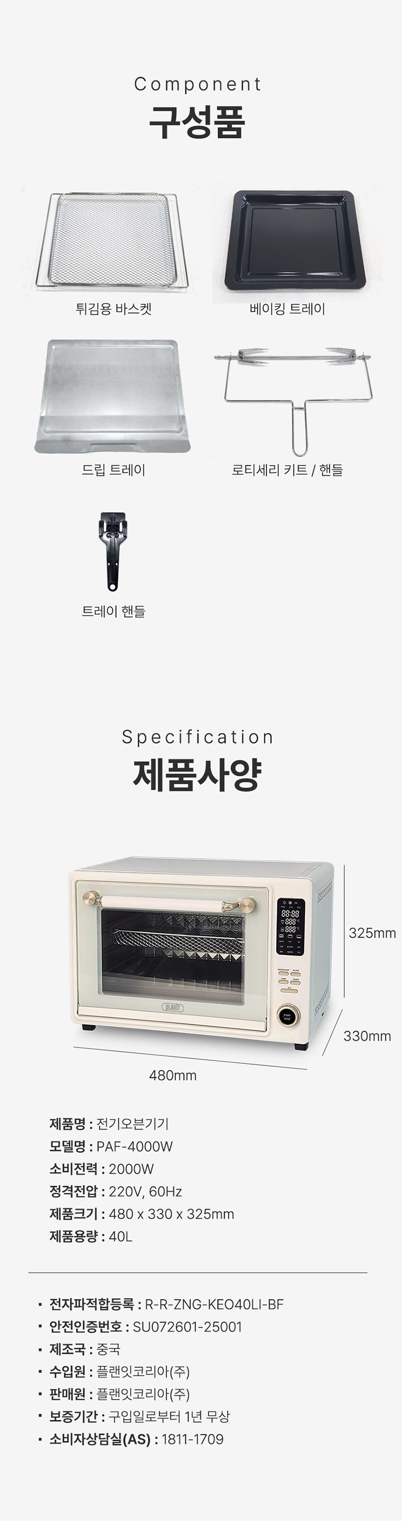 [플랜잇] 오븐에어프라이어 40L 스퀘어40 쉐프 PAF-40000W