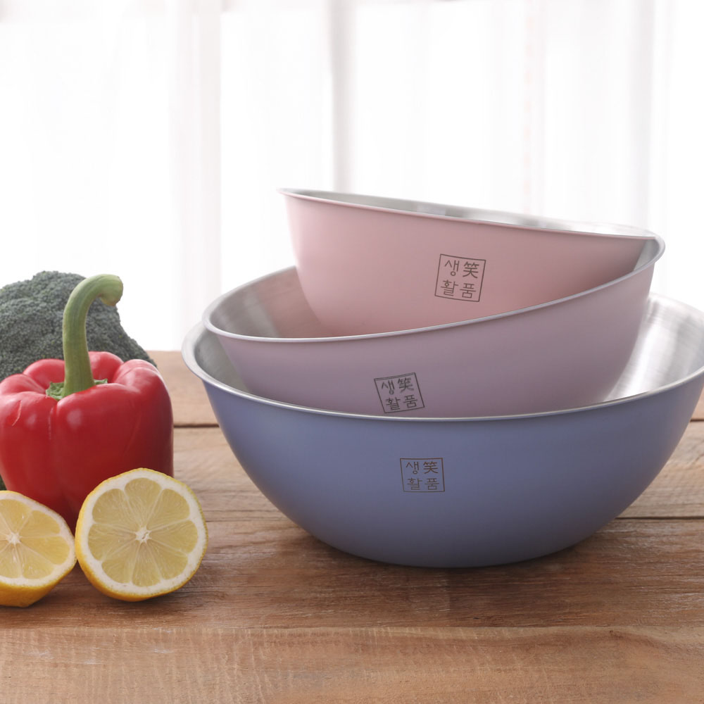 • [생활笑품] 스텐 믹싱볼 계량 양푼이 3종세트 / 핑크(20cm),퍼플(24cm),블루(28cm)