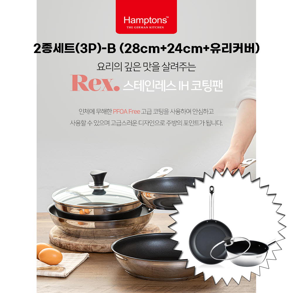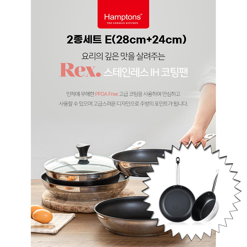 • [Hamptons] 햄튼 렉스 스텐 인덕션 코팅 후라이팬 2종세트-E