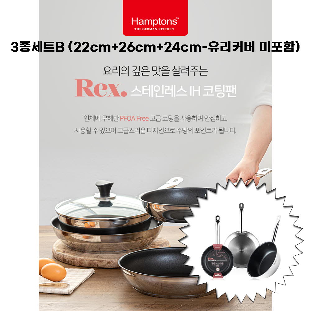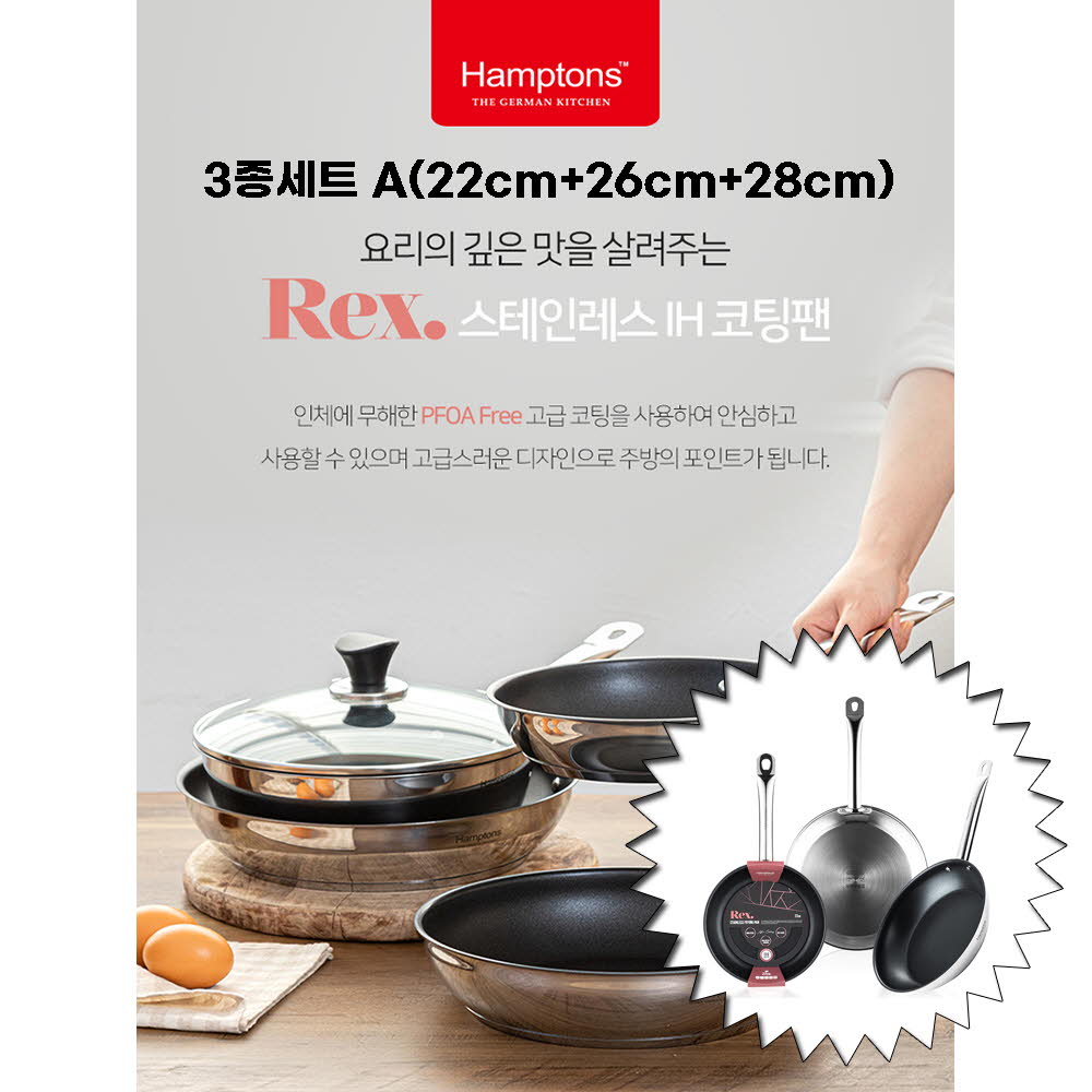 • [Hamptons] 햄튼 렉스 스텐 인덕션 코팅 후라이팬 3종세트-A