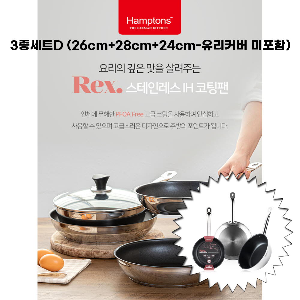 • [Hamptons] 햄튼 렉스 스텐 인덕션 코팅 후라이팬 3종세트-D