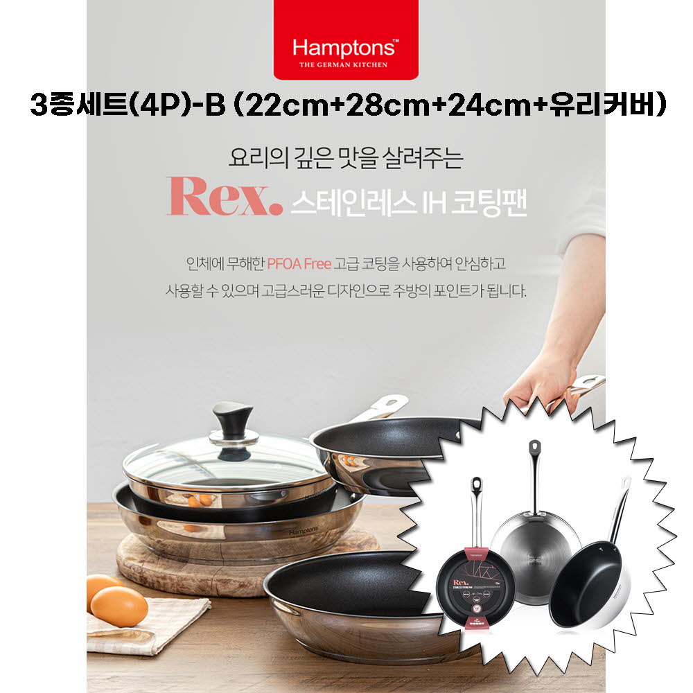 • [Hamptons] 햄튼 렉스 스텐 인덕션 코팅 후라이팬 3종세트(4p)-A