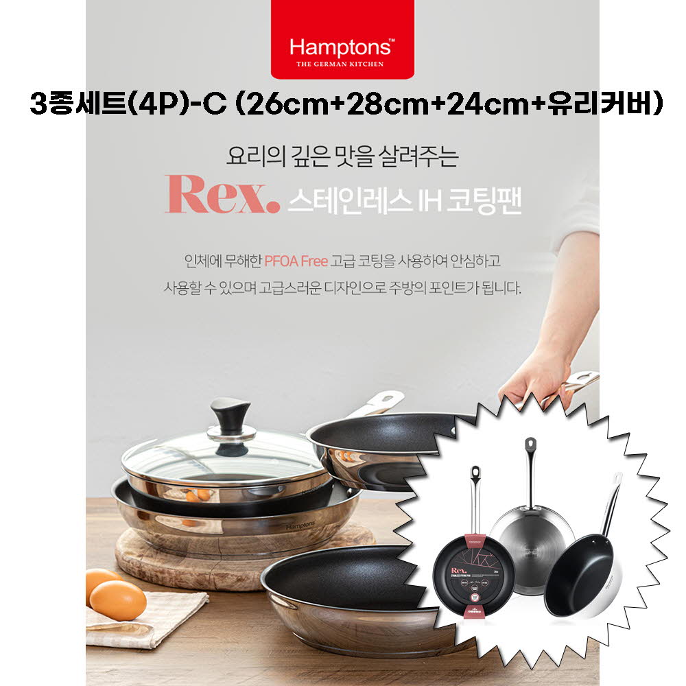 • [Hamptons] 햄튼 렉스 스텐 인덕션 코팅 후라이팬 3종세트(4p)-C
