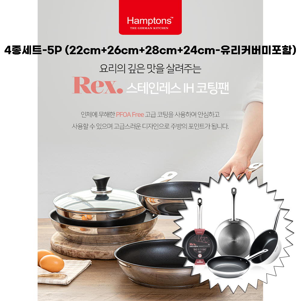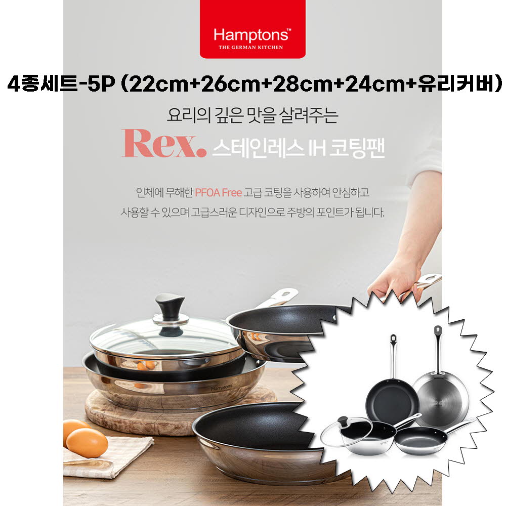 • [Hamptons] 햄튼 렉스 스텐 인덕션 코팅 후라이팬 4종세트(5p)